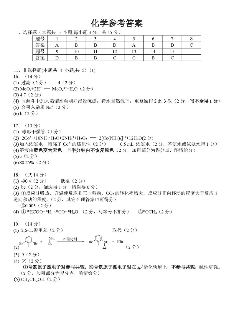 孝感市2026届高三年级第二次统一考试 化学答案.pdf