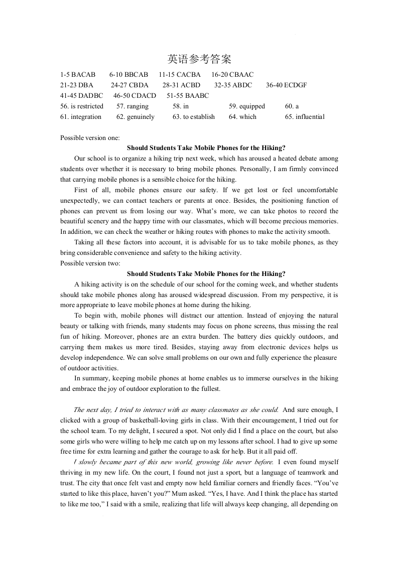 2026年4月襄阳市高三年级统一调研测试 英语答案.docx