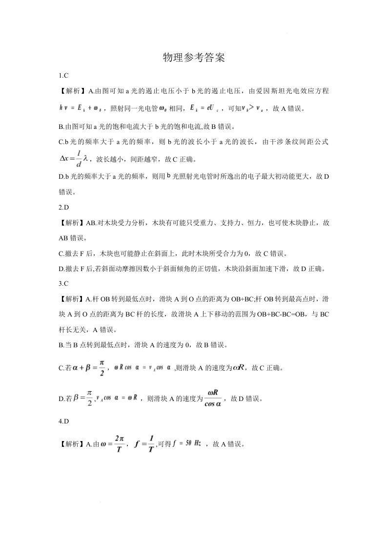 2026年4月襄阳市高三年级统一调研测试 物理答案.docx