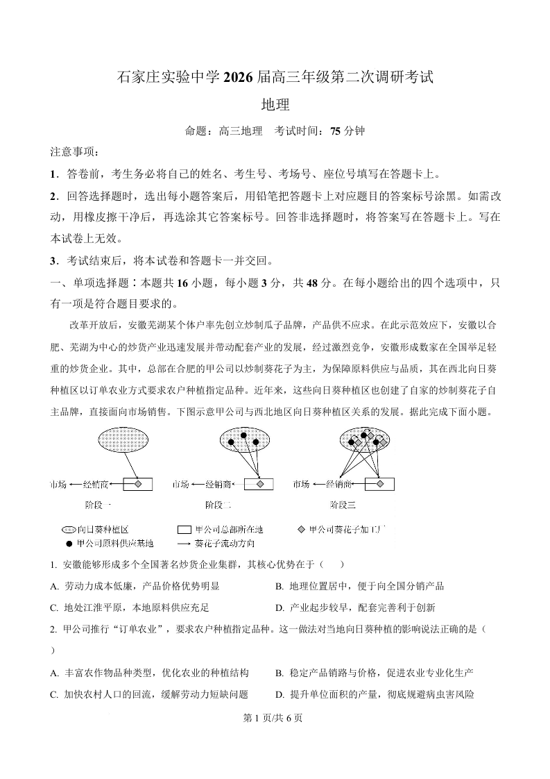河北省石家庄实验中学2026届高三下学期第二次调研考试 地理.docx