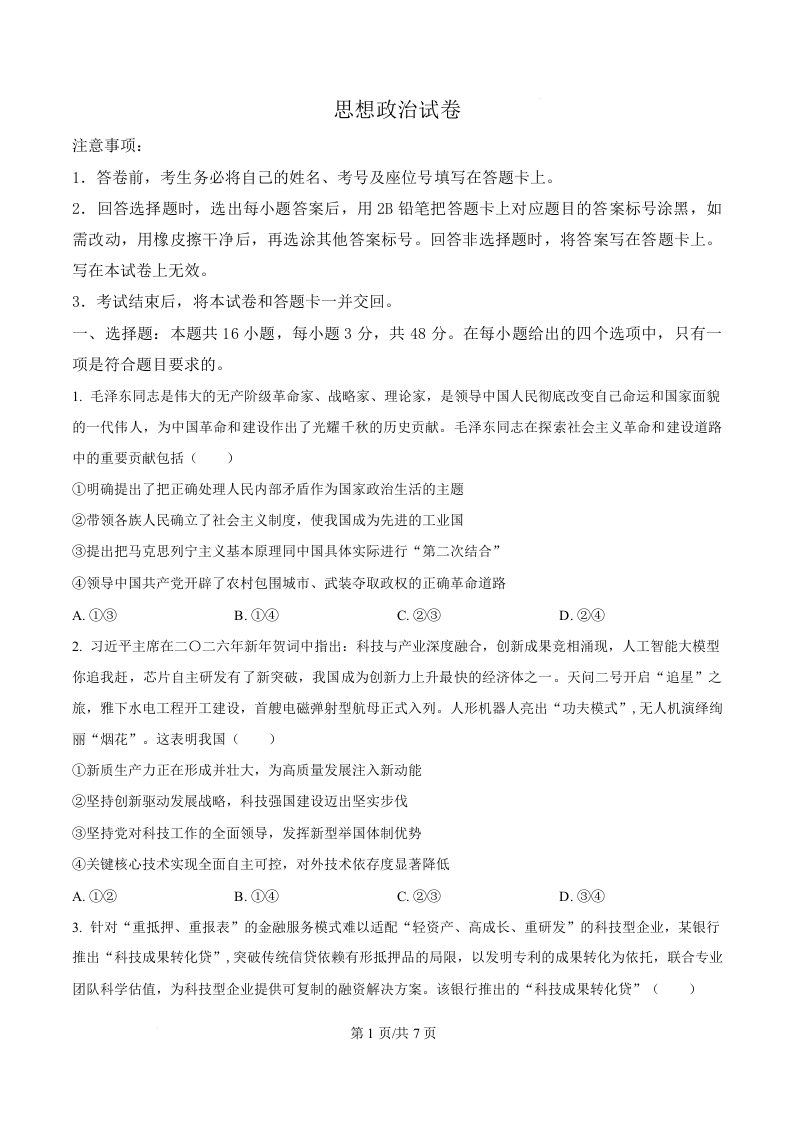 河北省沧州市2026届普通高中高三总复习质量监测 政治.docx