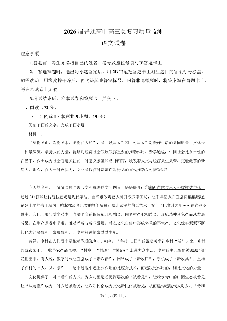 河北省沧州市2026届普通高中高三总复习质量监测 语文.docx