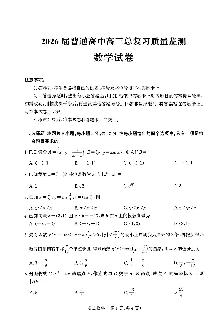 河北省沧州市2026届普通高中高三总复习质量监测 数学.pdf