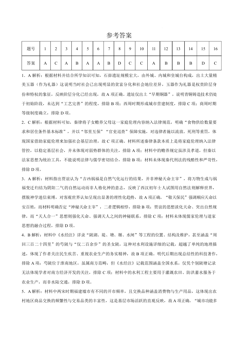 河北省沧州市2026届普通高中高三总复习质量监测 历史答案.docx