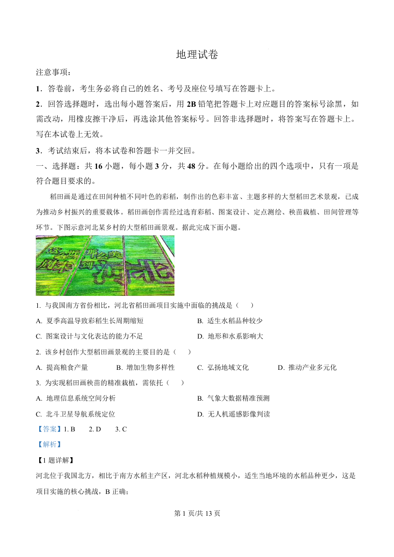 河北省沧州市2026届普通高中高三总复习质量监测 地理答案.docx