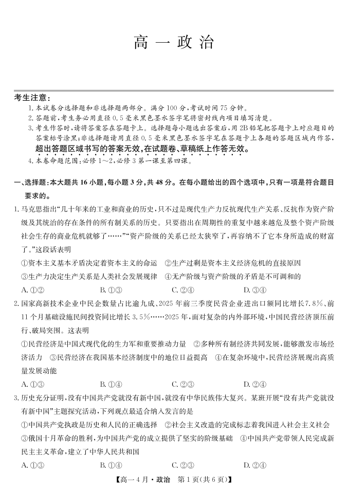 安徽省太湖中学2028届高一下学期4月联考 政治.pdf
