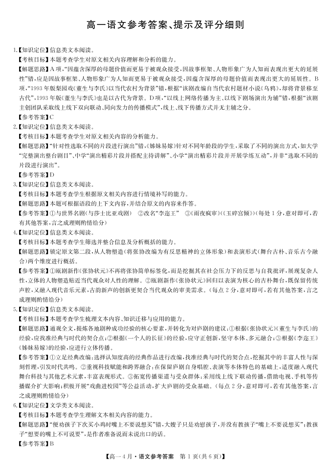 安徽省太湖中学2028届高一下学期4月联考 语文答案.pdf