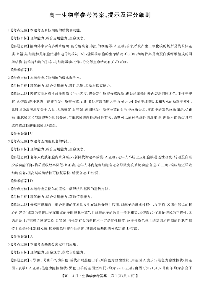 安徽省太湖中学2028届高一下学期4月联考 生物答案.pdf