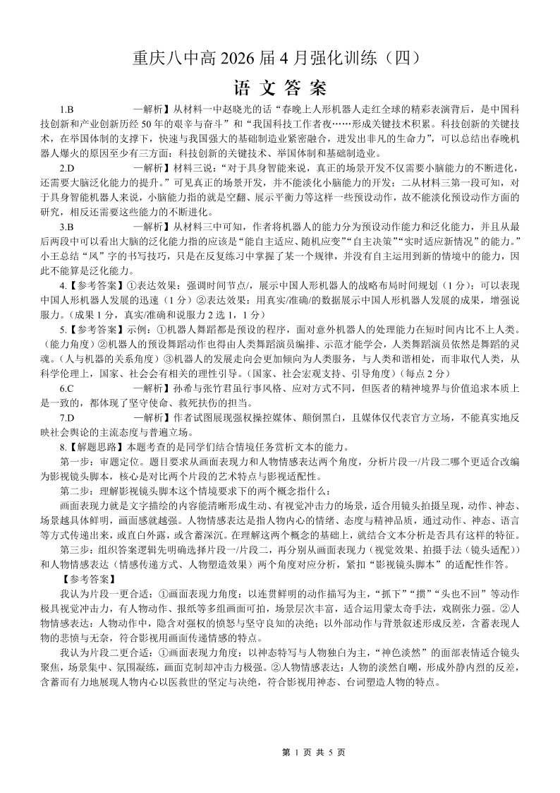 重庆八中高2026届4月强化训练(四)语文答案.pdf
