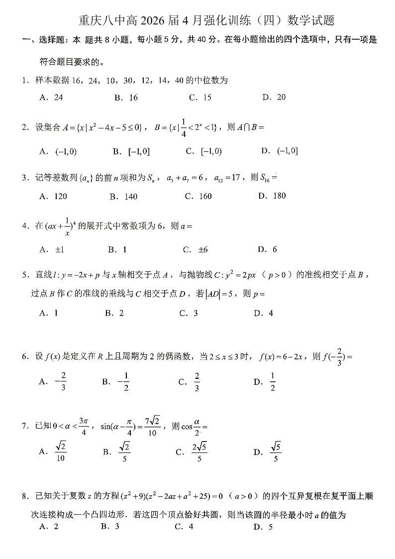 重庆八中高2026届4月强化训练(四)数学.pdf