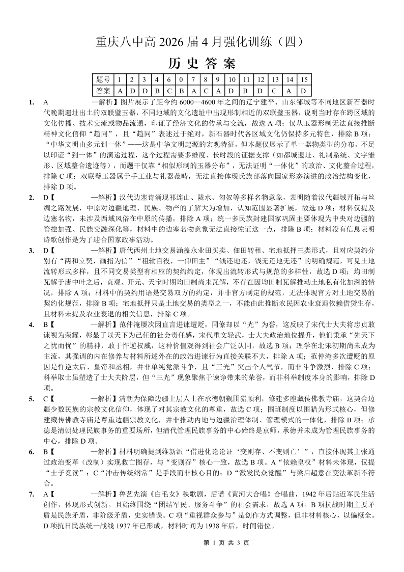 重庆八中高2026届4月强化训练(四)历史答案.pdf