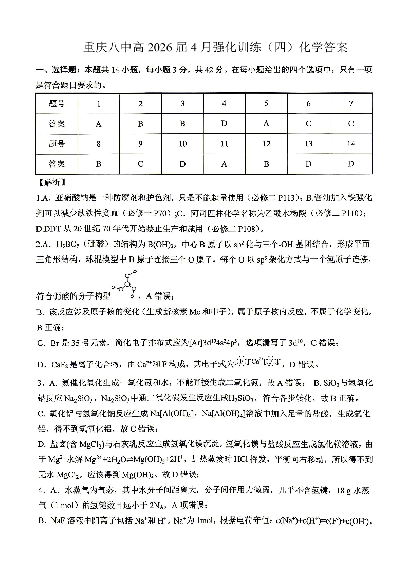 重庆八中高2026届4月强化训练(四)化学答案.pdf