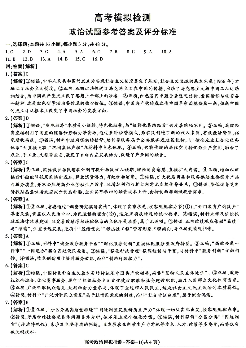 陕西省咸阳市2026届高三年级4月高考模拟检测 政治答案.pdf
