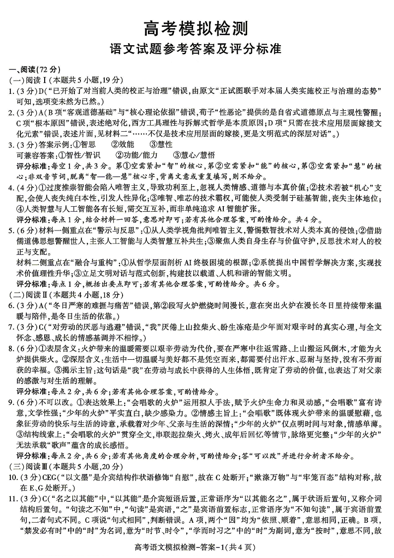 陕西省咸阳市2026届高三年级4月高考模拟检测 语文答案.pdf