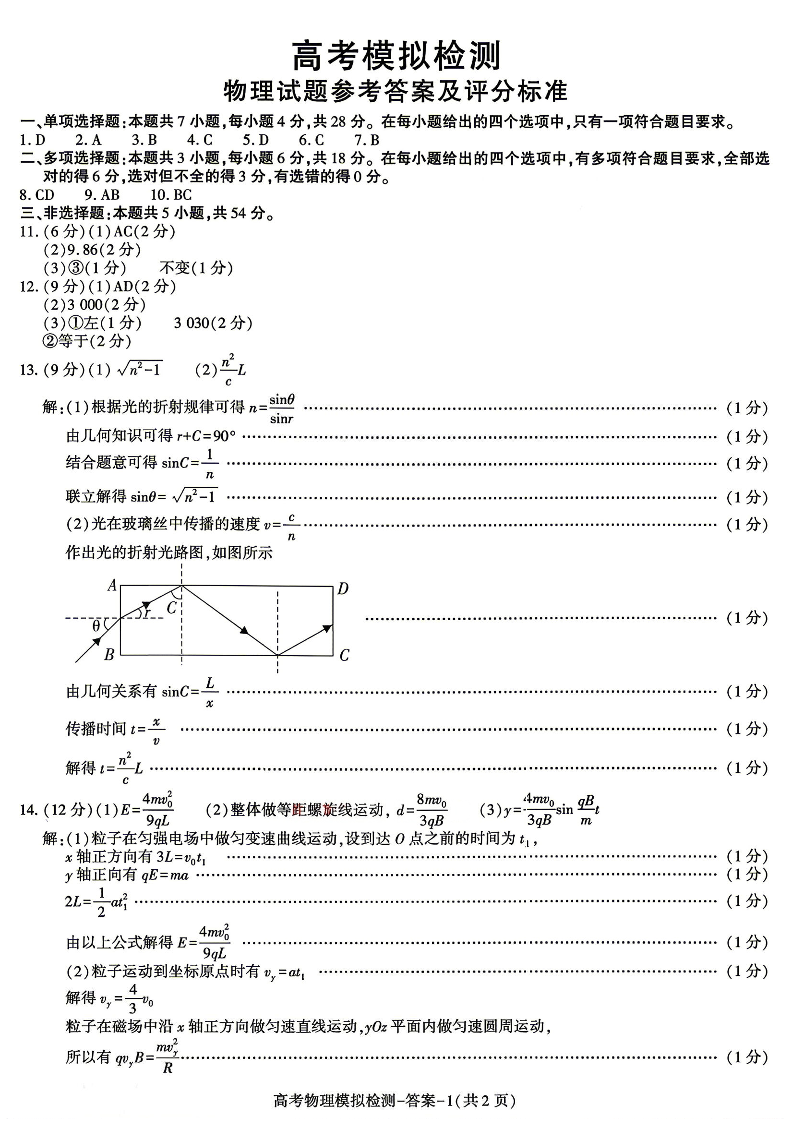 陕西省咸阳市2026届高三年级4月高考模拟检测 物理答案.pdf