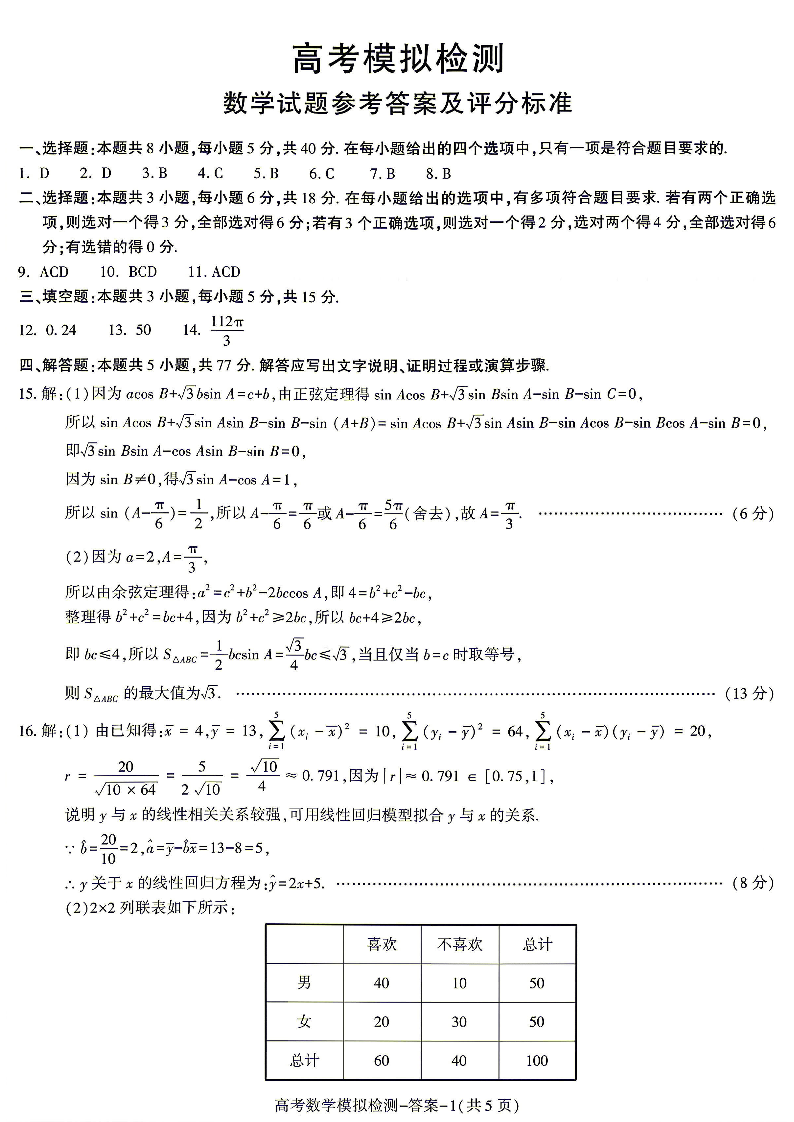 陕西省咸阳市2026届高三年级4月高考模拟检测 数学答案.pdf