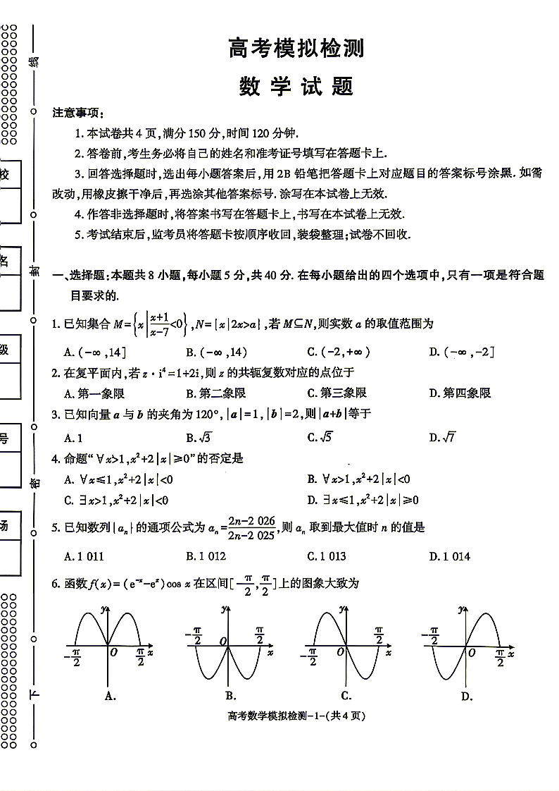 陕西省咸阳市2026届高三年级4月高考模拟检测 数学.pdf