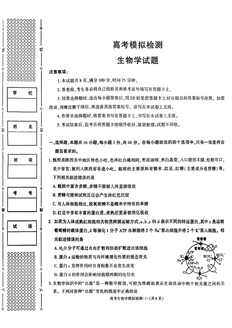 陕西省咸阳市2026届高三年级4月高考模拟检测 生物.pdf