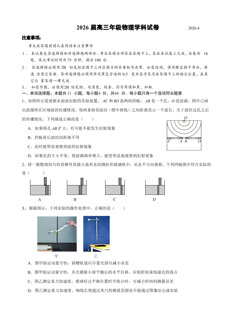 江苏省徐州市第一中学、宿迁中学等2026届高三4月六校联考 物理试卷(含答案).pdf