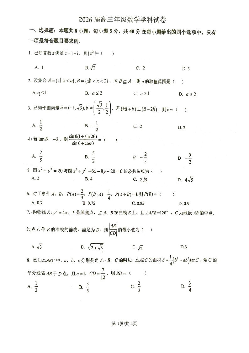 江苏省徐州市第一中学、宿迁中学等2026届高三4月六校联考 数学试卷(含答案).pdf