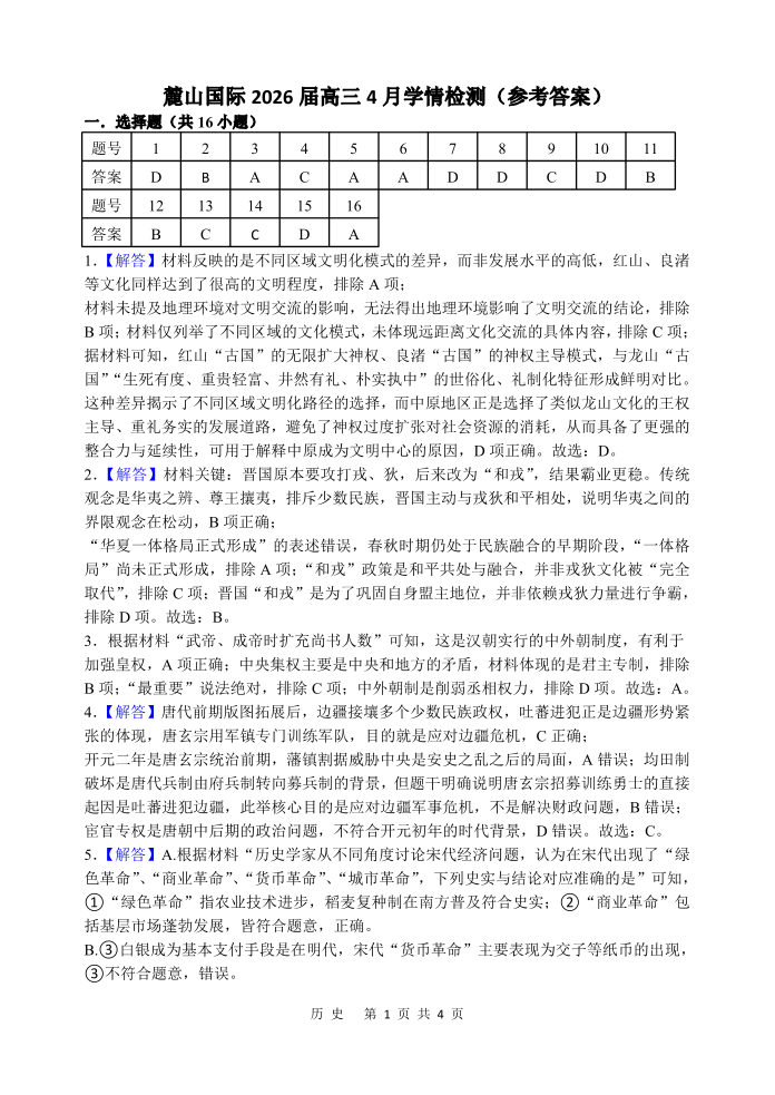 麓山国际2026届高三4月学情检测 历史答案.pdf