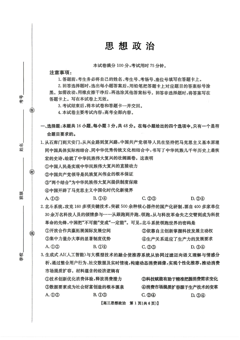 湖南省怀化市2026年高考第二次仿真模拟诊断性考试 政治.pdf
