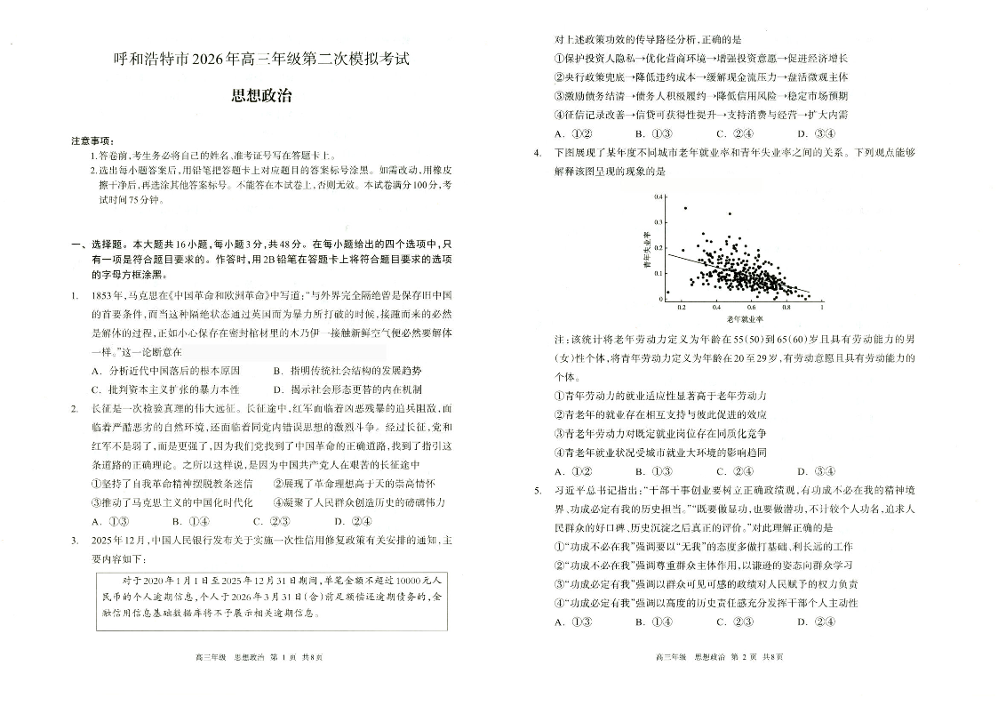 呼和浩特市2026年高三年级第二次模拟考试 政治.pdf