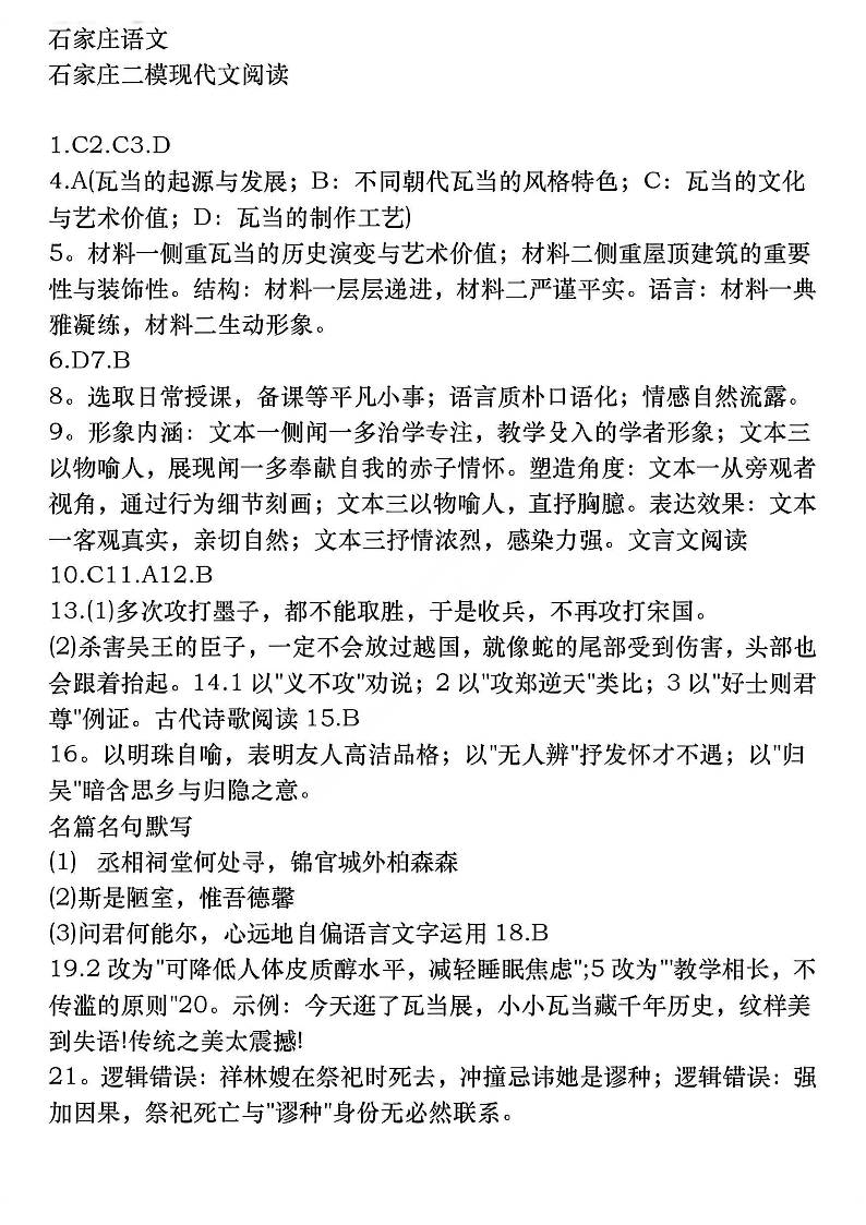 石家庄市2026届普通高中毕业年级高三年级教学质量检测(二)语文答案.pdf