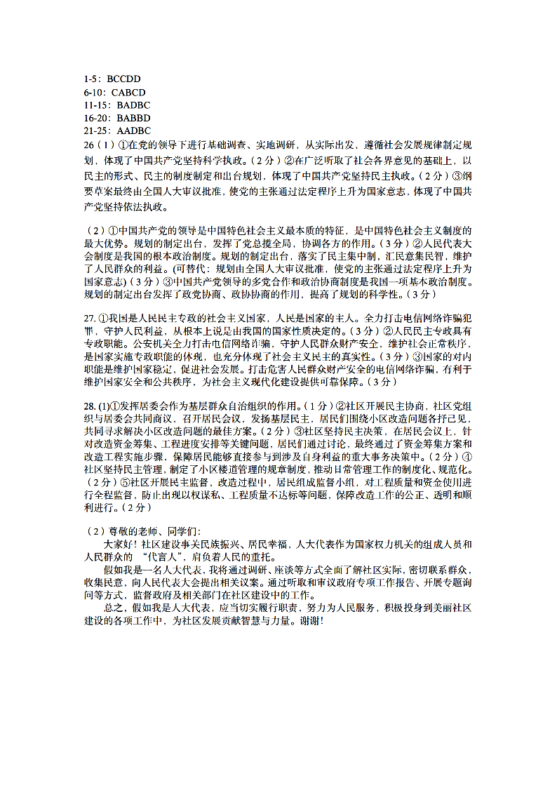 浙江省五湖联盟2025学年高一第二学期期中联考 政治答案.pdf