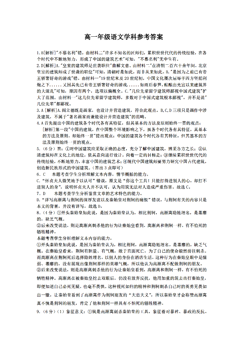 浙江省五湖联盟2025学年高一第二学期期中联考 语文答案.pdf