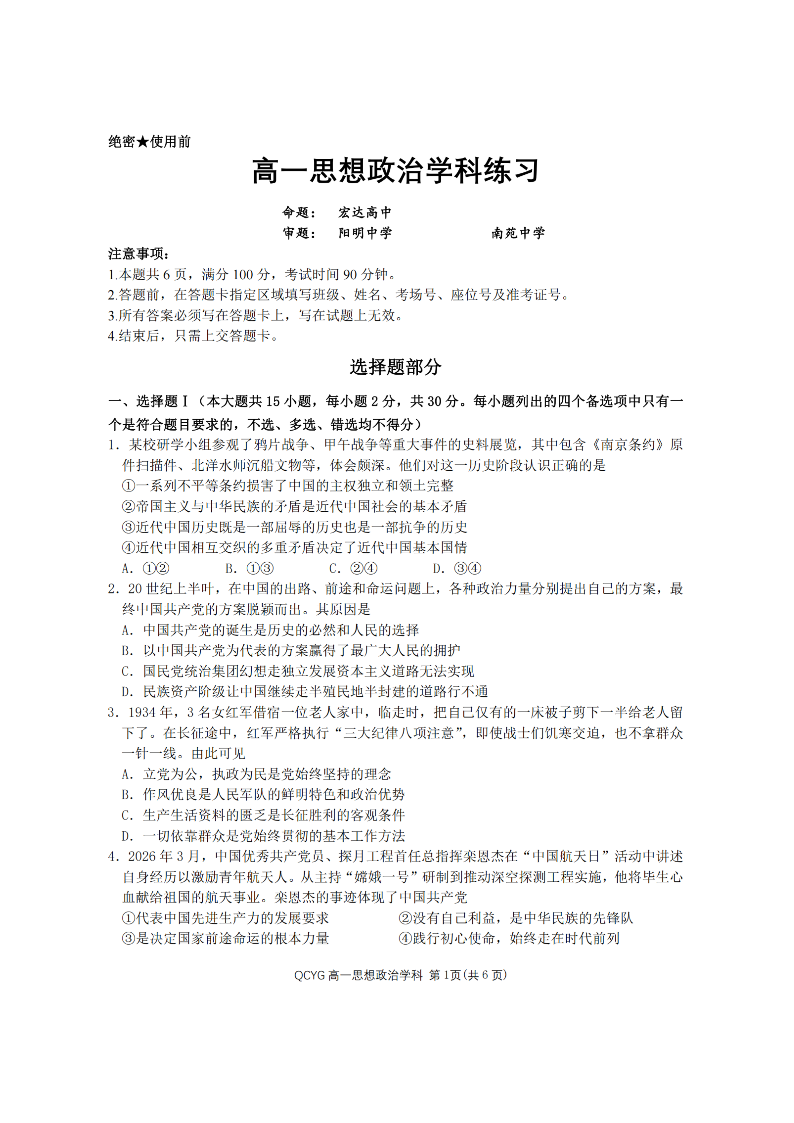 七彩阳光新高考研究联盟2025学年高一第二学期期中联考 政治.pdf