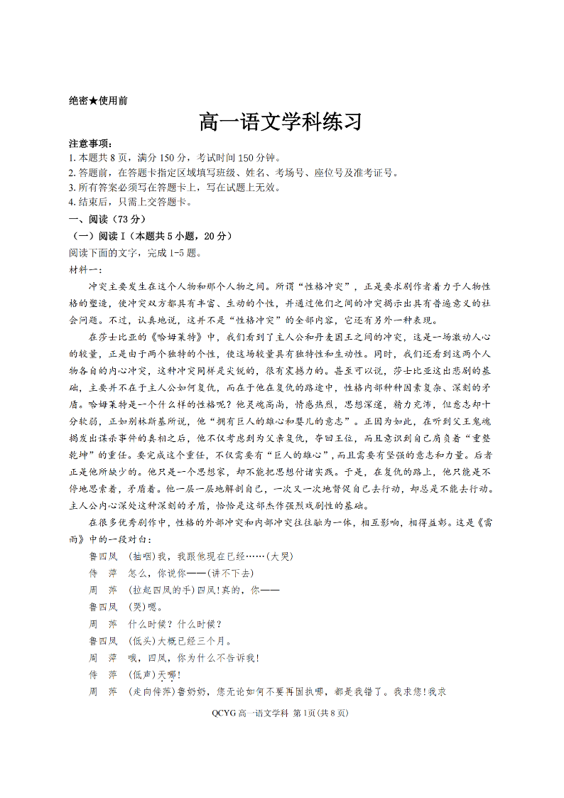 七彩阳光新高考研究联盟2025学年高一第二学期期中联考 语文.pdf