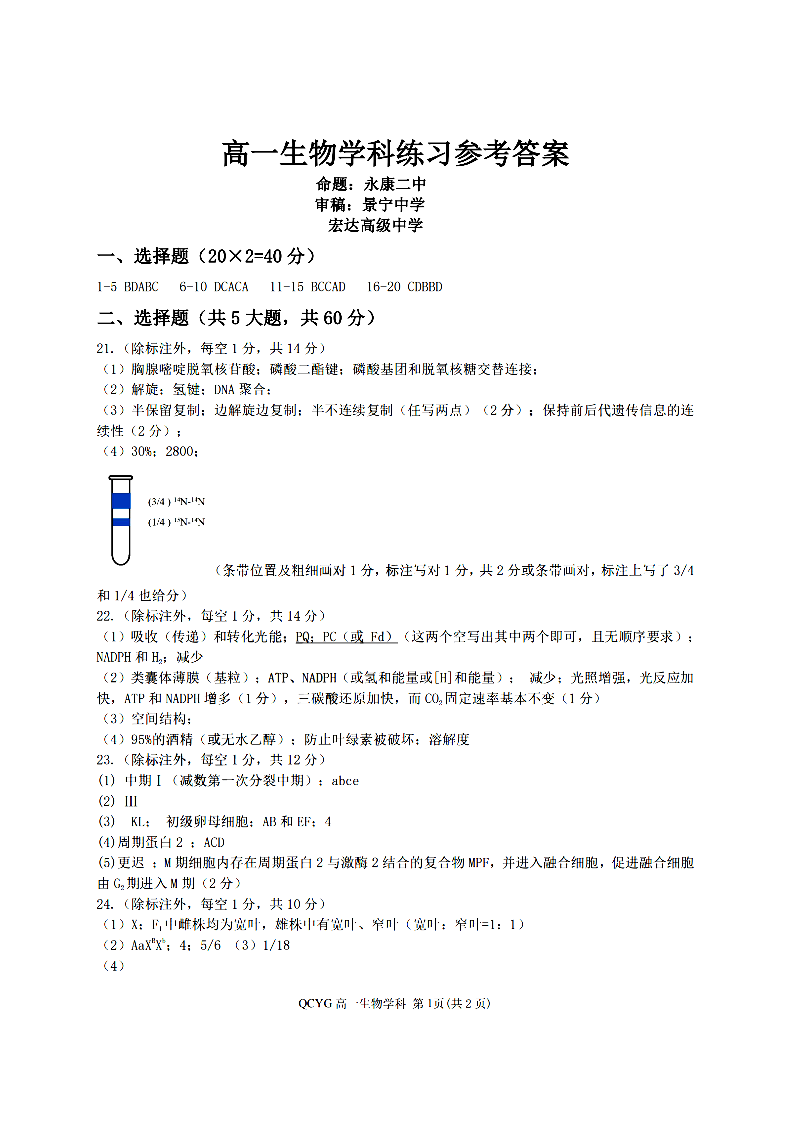 七彩阳光新高考研究联盟2025学年高一第二学期期中联考 生物答案.pdf