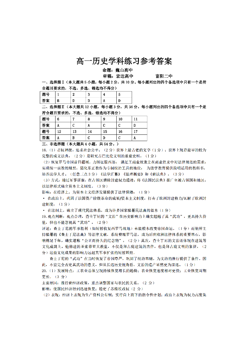 七彩阳光新高考研究联盟2025学年高一第二学期期中联考 历史答案.pdf
