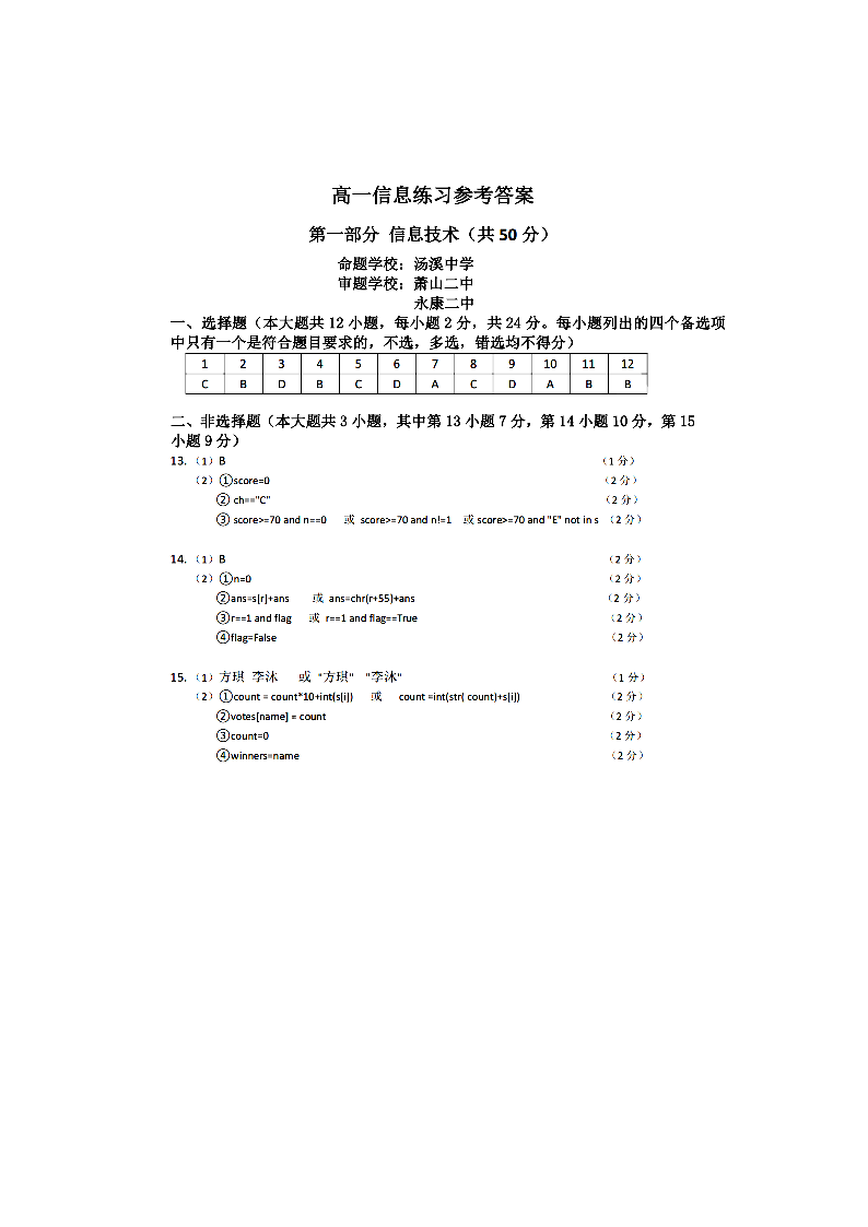 七彩阳光新高考研究联盟2025学年高一第二学期期中联考 技术答案.pdf