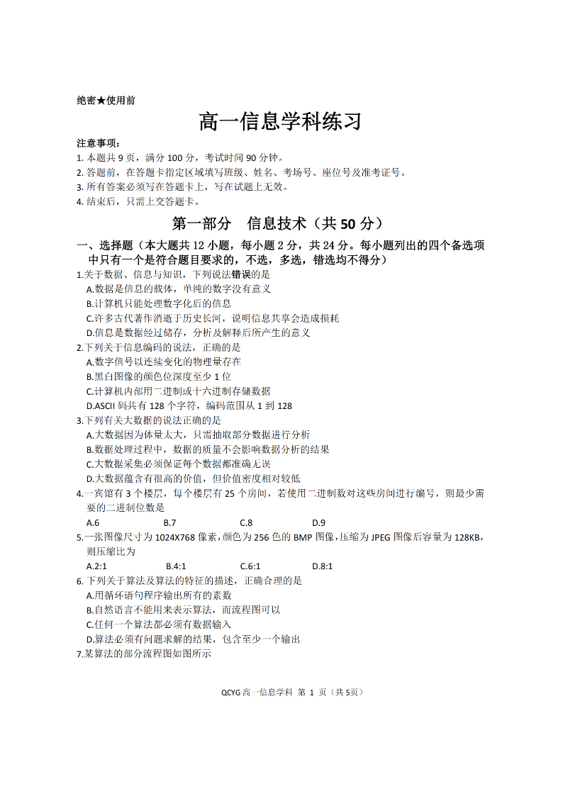 七彩阳光新高考研究联盟2025学年高一第二学期期中联考 技术.pdf