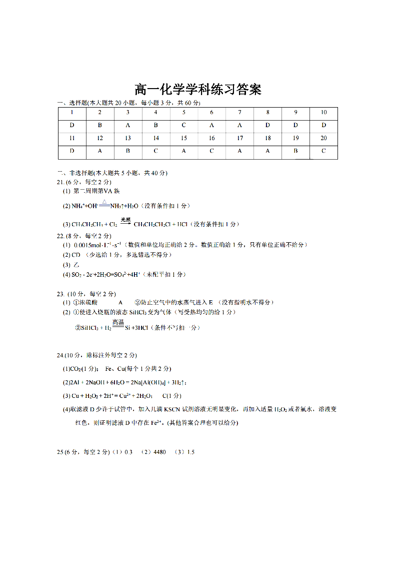 七彩阳光新高考研究联盟2025学年高一第二学期期中联考 化学答案.pdf