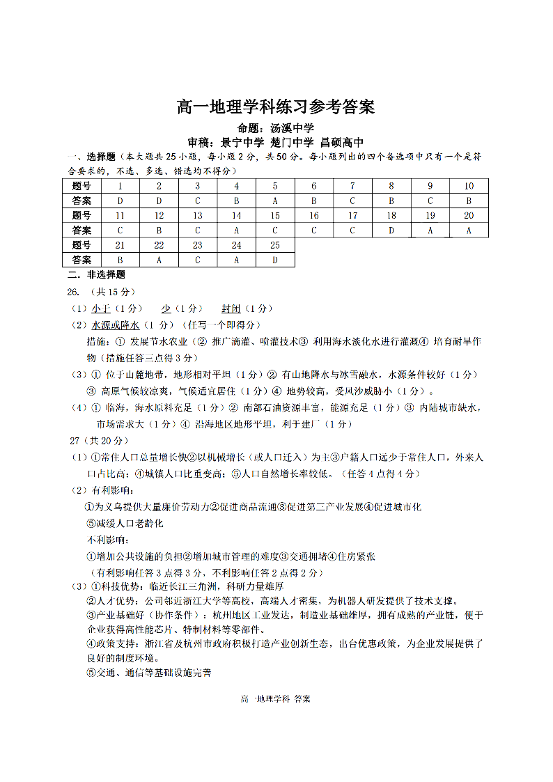 七彩阳光新高考研究联盟2025学年高一第二学期期中联考 地理答案.pdf