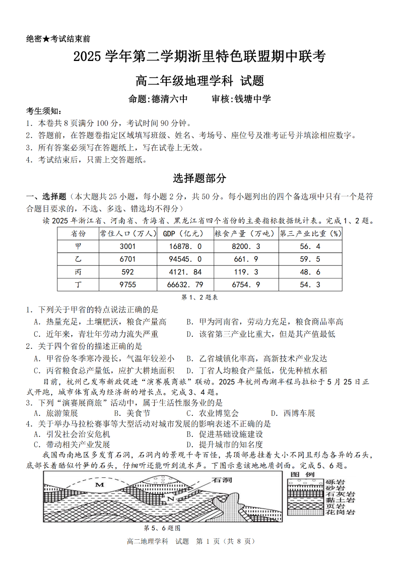 浙里特色联盟2025学年高二第二学期期中联考 地理.pdf