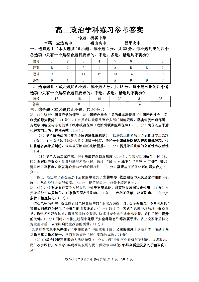 七彩阳光新高考研究联盟2025学年高二第二学期期中联考 政治答案.pdf