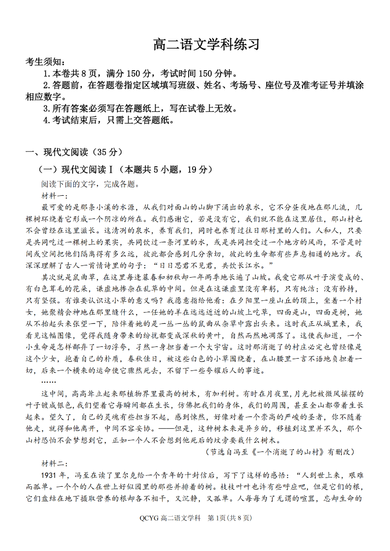 七彩阳光新高考研究联盟2025学年高二第二学期期中联考 语文.pdf