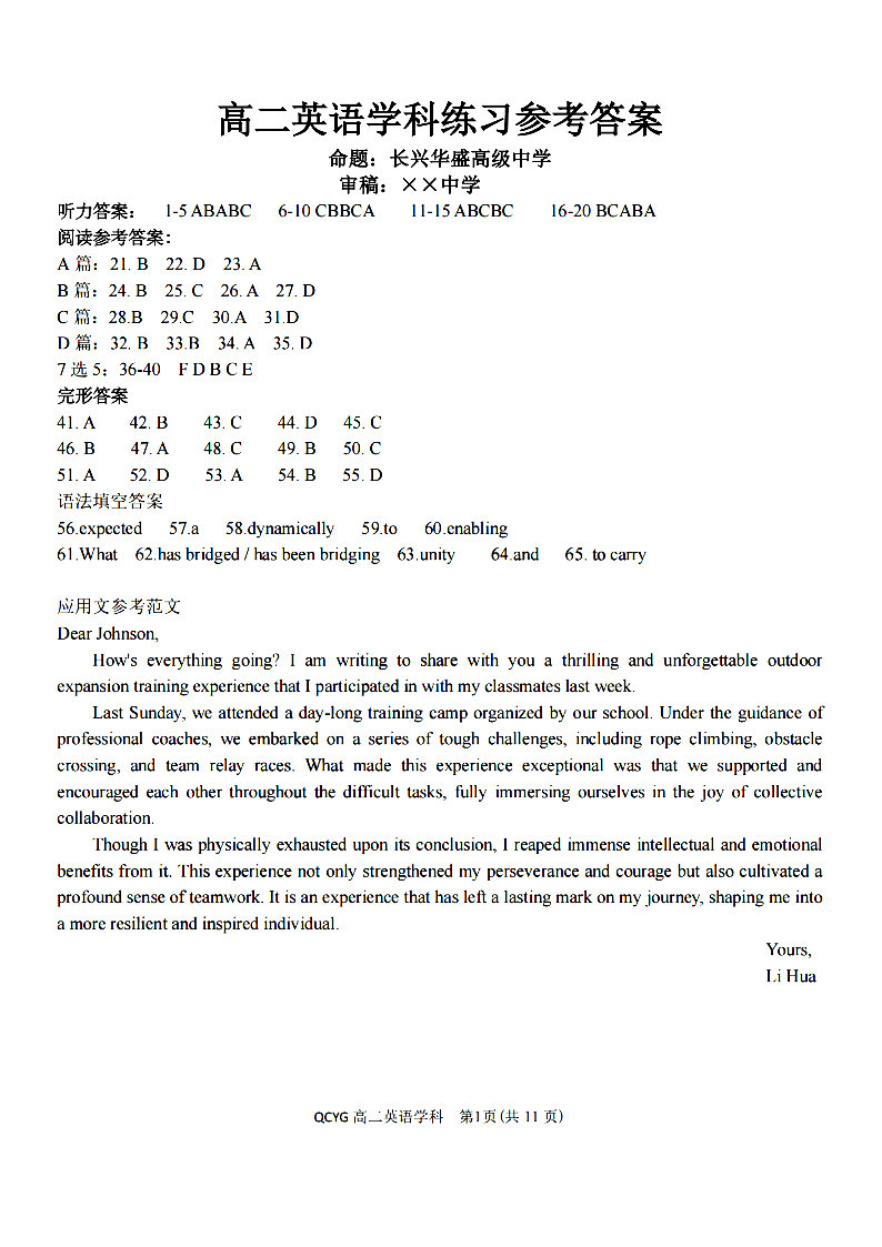 七彩阳光新高考研究联盟2025学年高二第二学期期中联考 英语答案.pdf