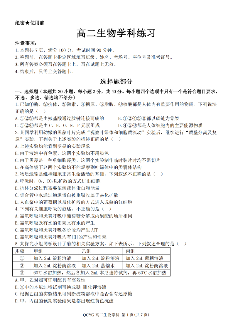 七彩阳光新高考研究联盟2025学年高二第二学期期中联考 生物.pdf