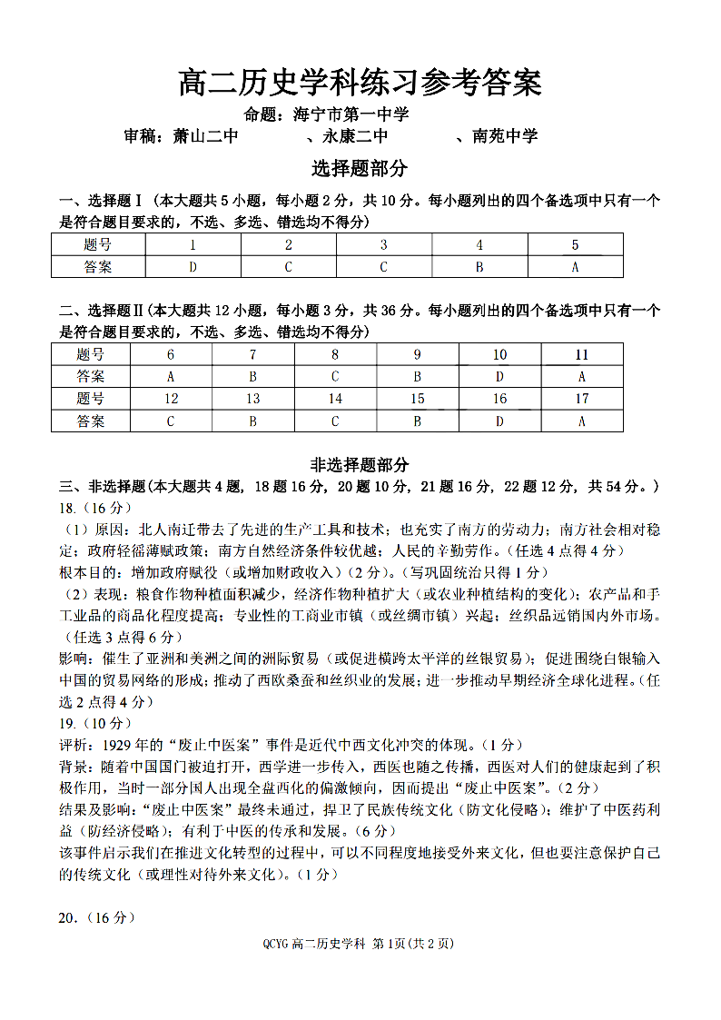 七彩阳光新高考研究联盟2025学年高二第二学期期中联考 历史答案.pdf