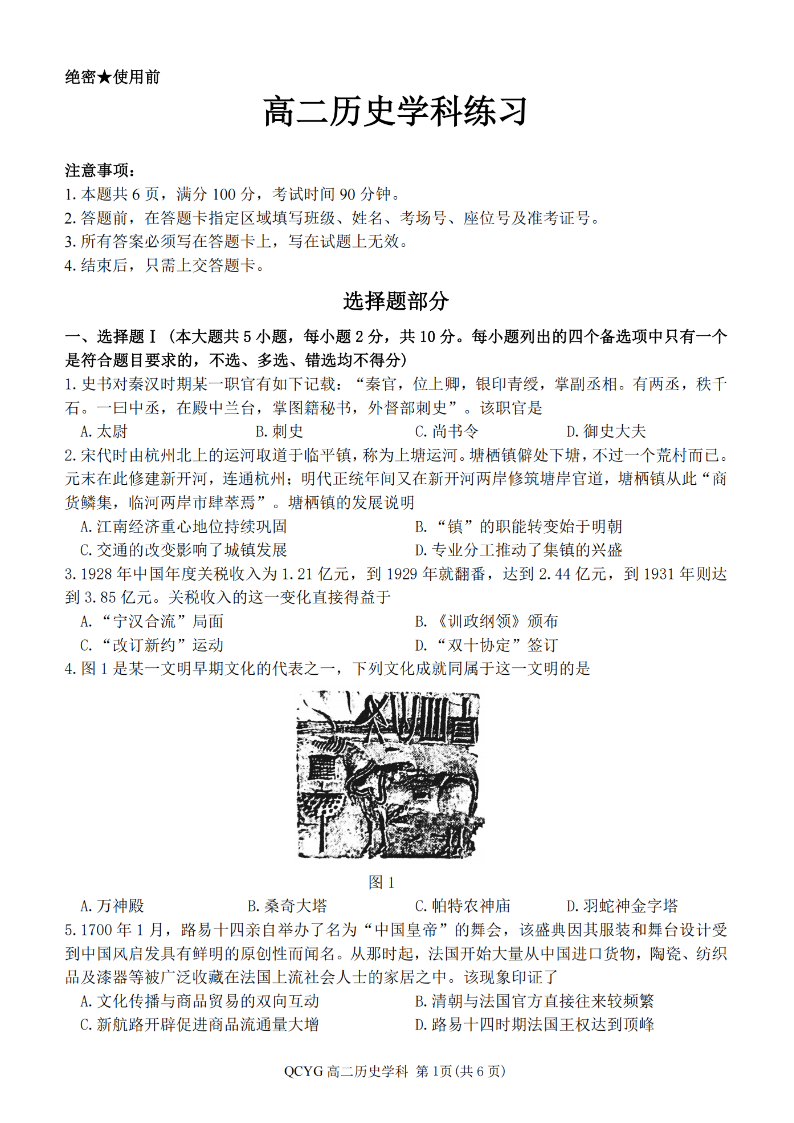 七彩阳光新高考研究联盟2025学年高二第二学期期中联考 历史.pdf