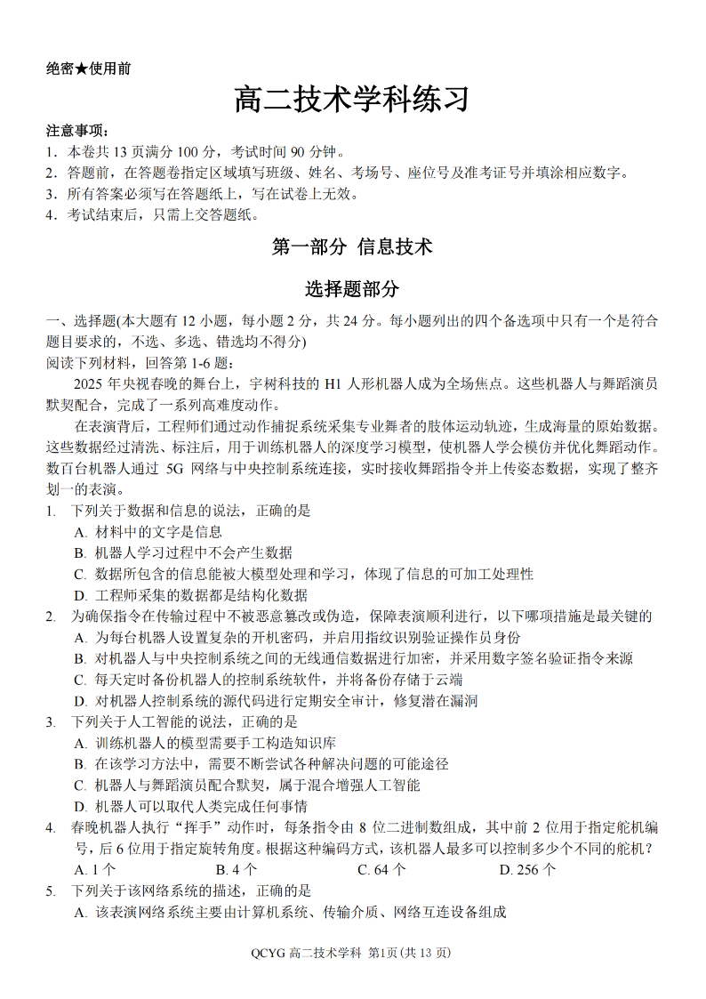 七彩阳光新高考研究联盟2025学年高二第二学期期中联考 技术.pdf
