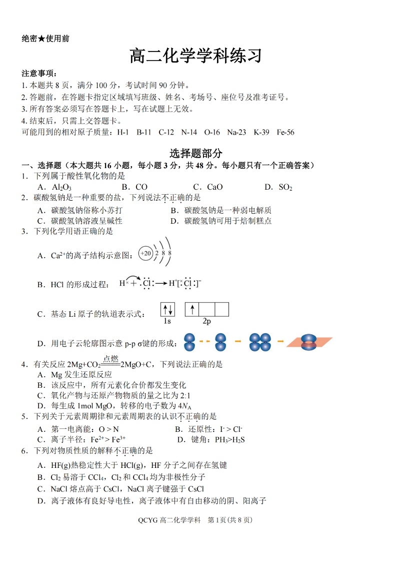 七彩阳光新高考研究联盟2025学年高二第二学期期中联考 化学.pdf