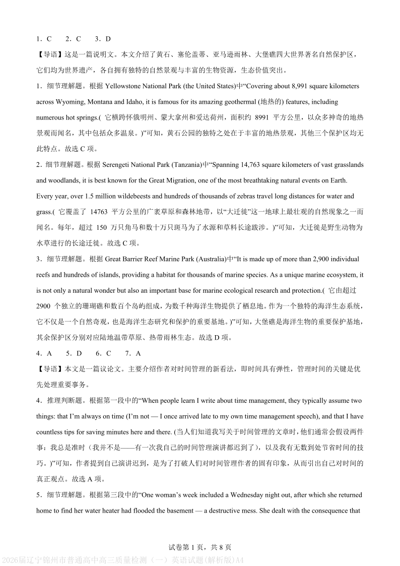 辽宁省锦州市2026届高三下学期质量检测(一)英语答案.pdf