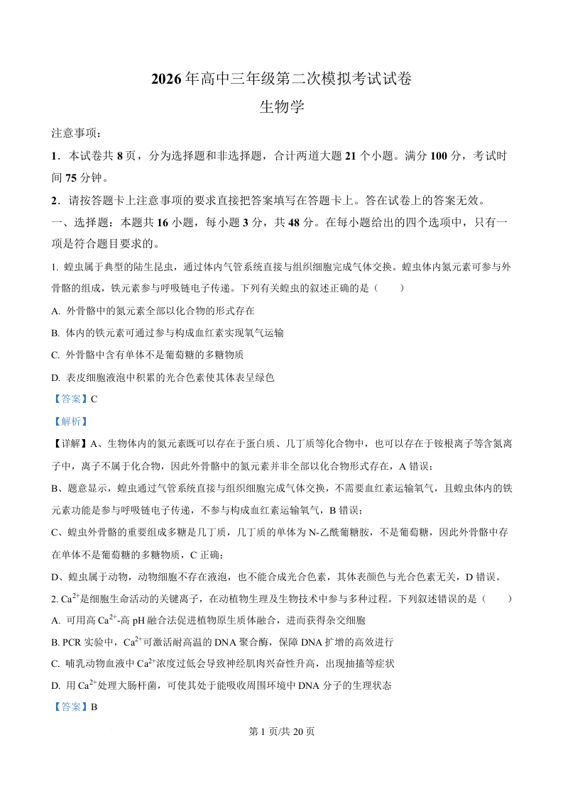 河南省濮阳市2026届高三第二次模拟考试 生物答案.docx