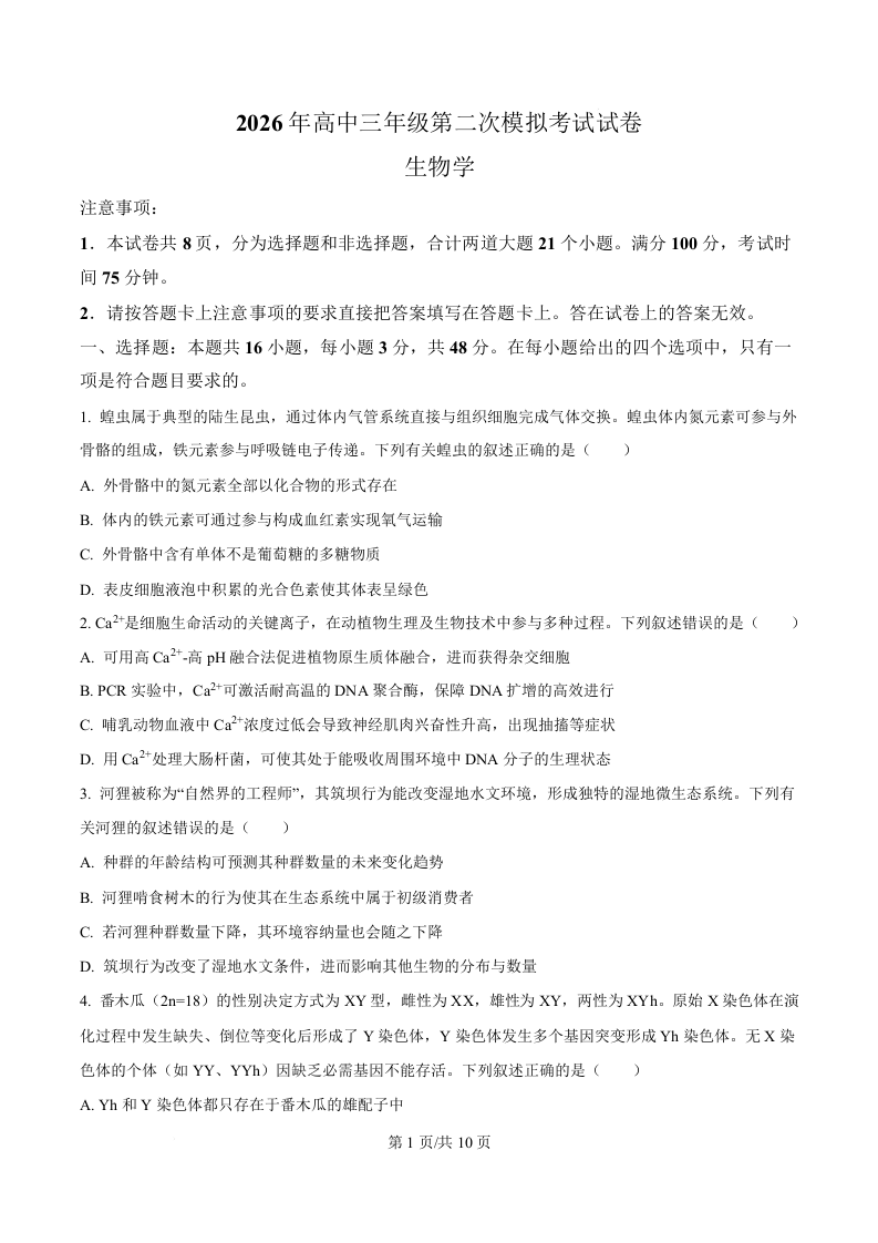 河南省濮阳市2026届高三第二次模拟考试 生物.docx
